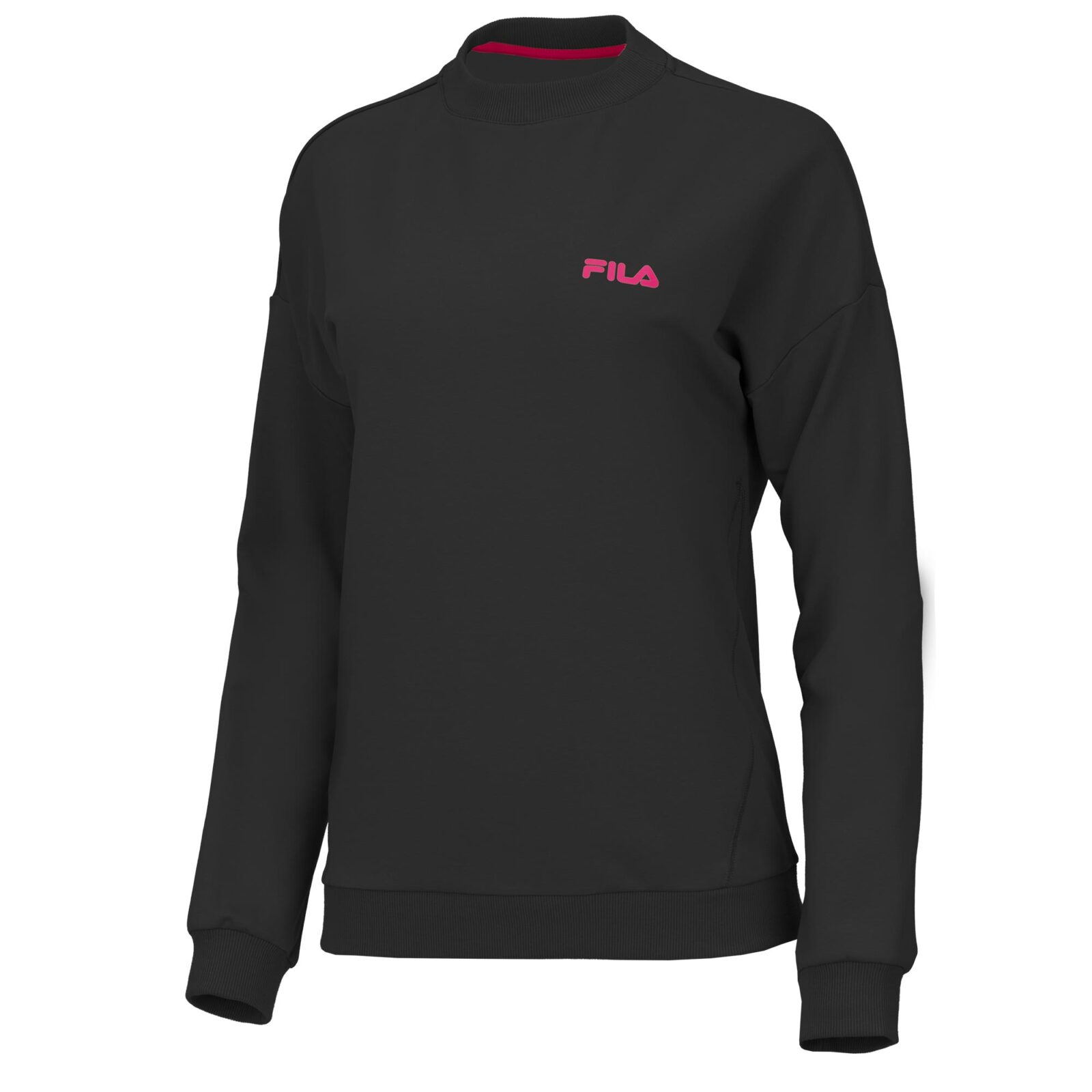 The FILA ELODIE women's sweater is a trendy sweater from the modern FILA collection. It has a small FILA logo on the left front and patent on the sleeves, collar and waistband.